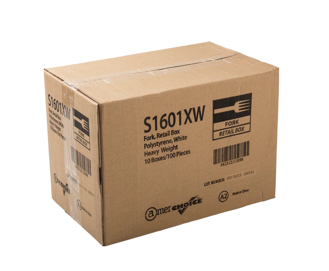 These Heavyweight Polystyrene Forks can cut through tougher food items such as steak and are ideal for catering and takeout locations, restaurants, and more. Disposable, they eliminate the need to clean cutlery after use. Allow customers to easily enjoy meals on the go with VIP's varied selection of disposable cutlery. Packed in convenient inner retail boxes of 100 they provide a cleaner alternative to bulk packs.