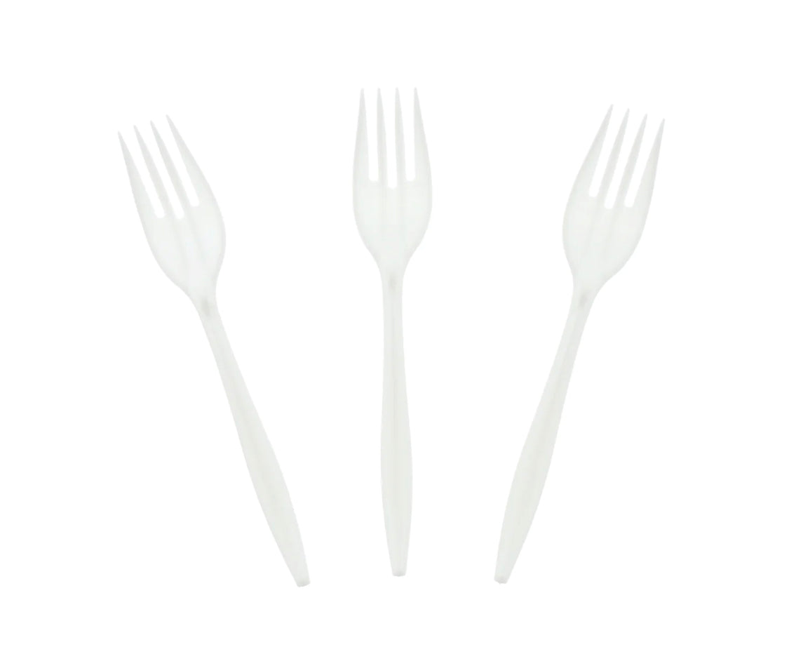 These white forks are made from medium-weight polypropylene plastic. They are disposable, which conveniently eliminates the need for washing after use. These forks are an excellent choice for any restaurant, takeout or catering location looking for a convenient and disposable option.