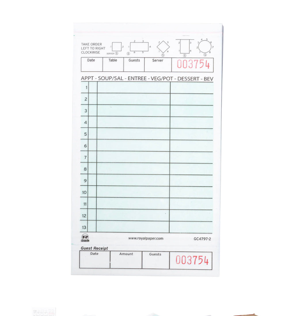 Carbonless 2 Part Loose 13 Line Guest Check Board. Avoid mistakes. Better than memory. Improve table service. Provide professional service. Each case contains 8 packs with 250 checks per pack. 2000 total checks per case.