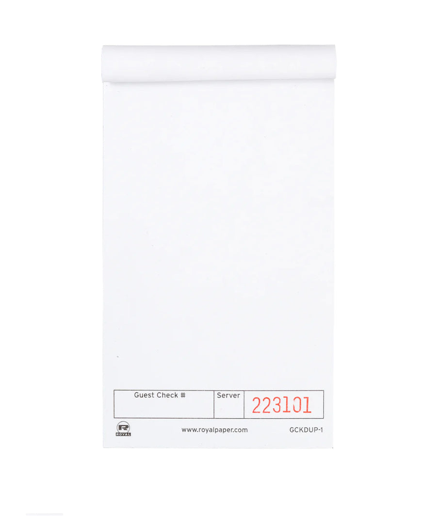 White 1 Part Booked Unlined Paper Guest Checks. Avoid mistakes. Better than memory. Improve table service. Provide professional service. Each case contains 100 books with 50 checks per book. 5000 total checks per case.