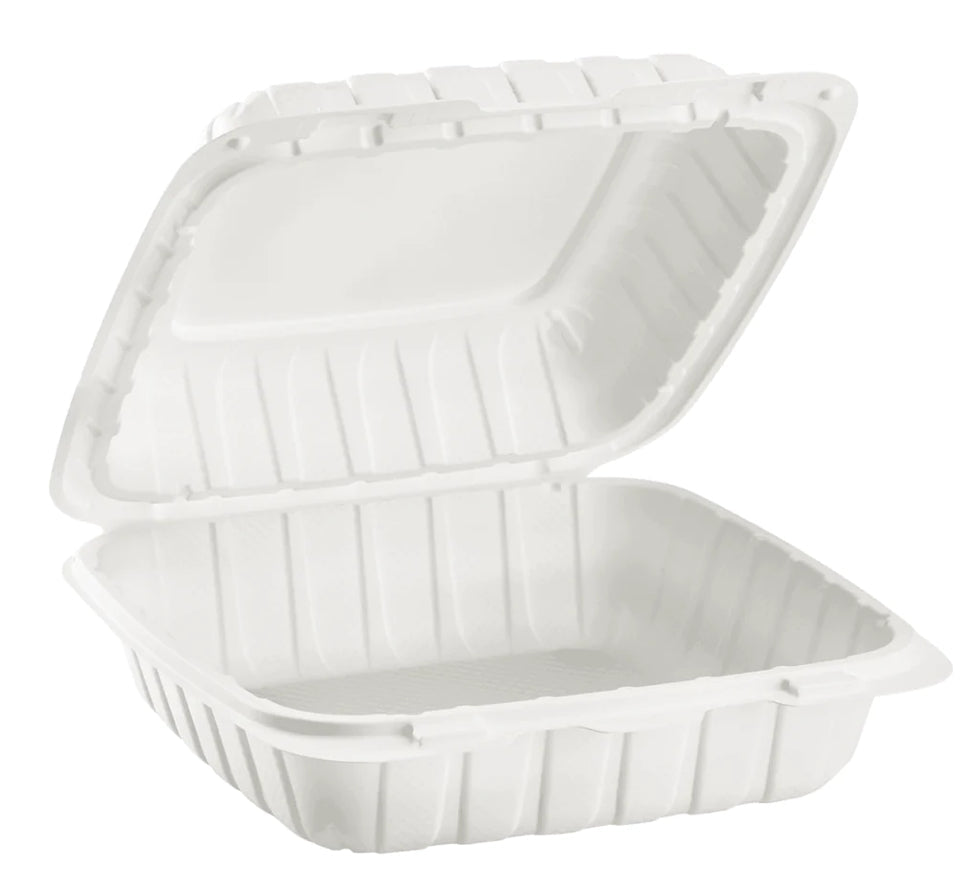 8" x 8" Mineral Filled PP Hinged Container, 1 compartment, White - 200 pcs