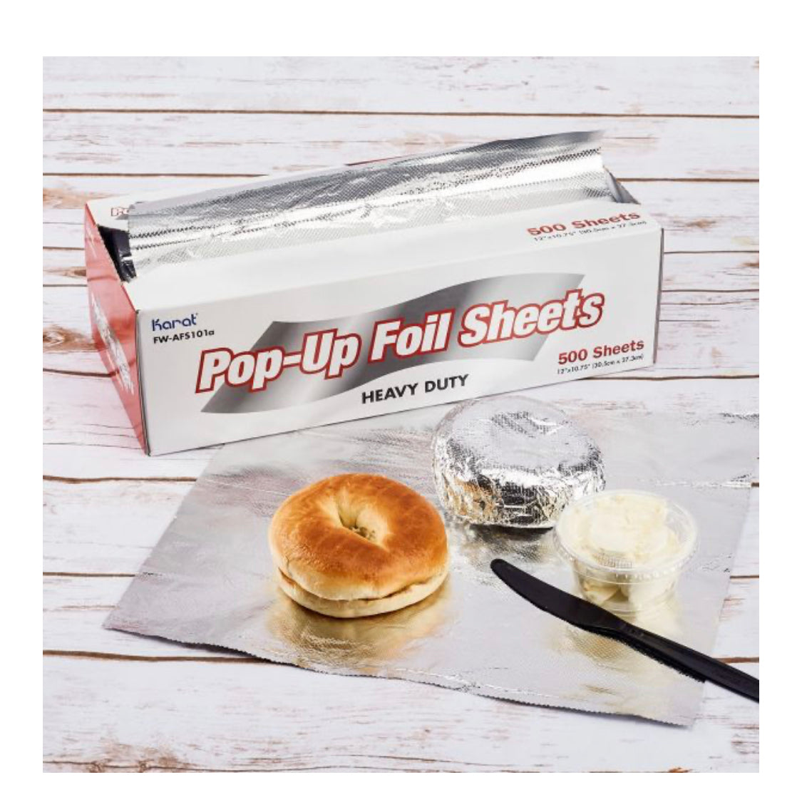 Wrap up to-go items or your left-over food and ingredients in heavy-duty aluminum foil pop-up sheets! Pre-cut sheets allow for quick and easy use for catering services, restaurants and more. Foil pop-up sheets will maintain the temperature of your hot or cold foods. They are oven safe, recyclable and leak resistant. Our heavy-duty sheets are thicker and stronger for less breakage.
