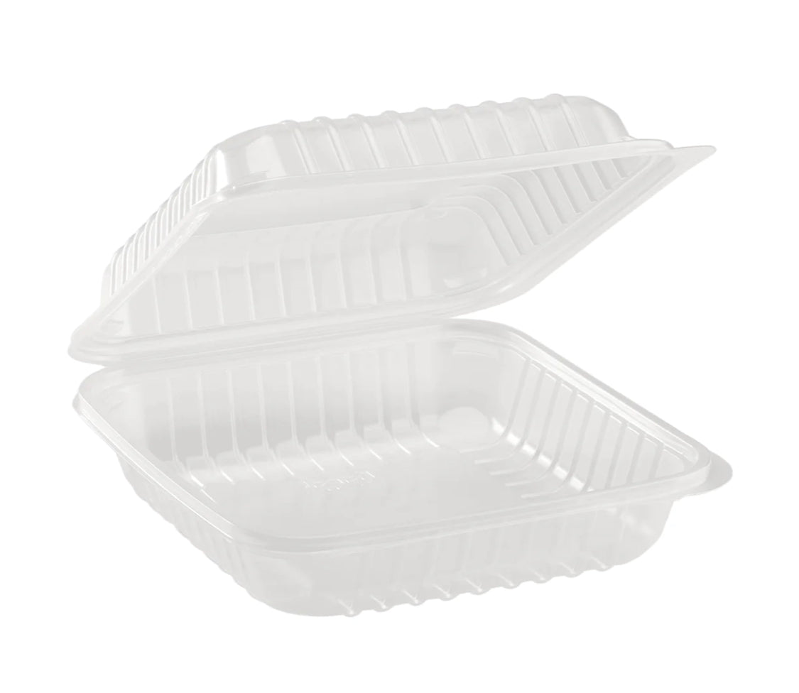 Clear PP hinged containers are made from high quality polypropylene (PP) material. These containers are sturdy and stackable for easy storage. They are also translucent making it possible for your food to be displayed and identified for your customers to see!