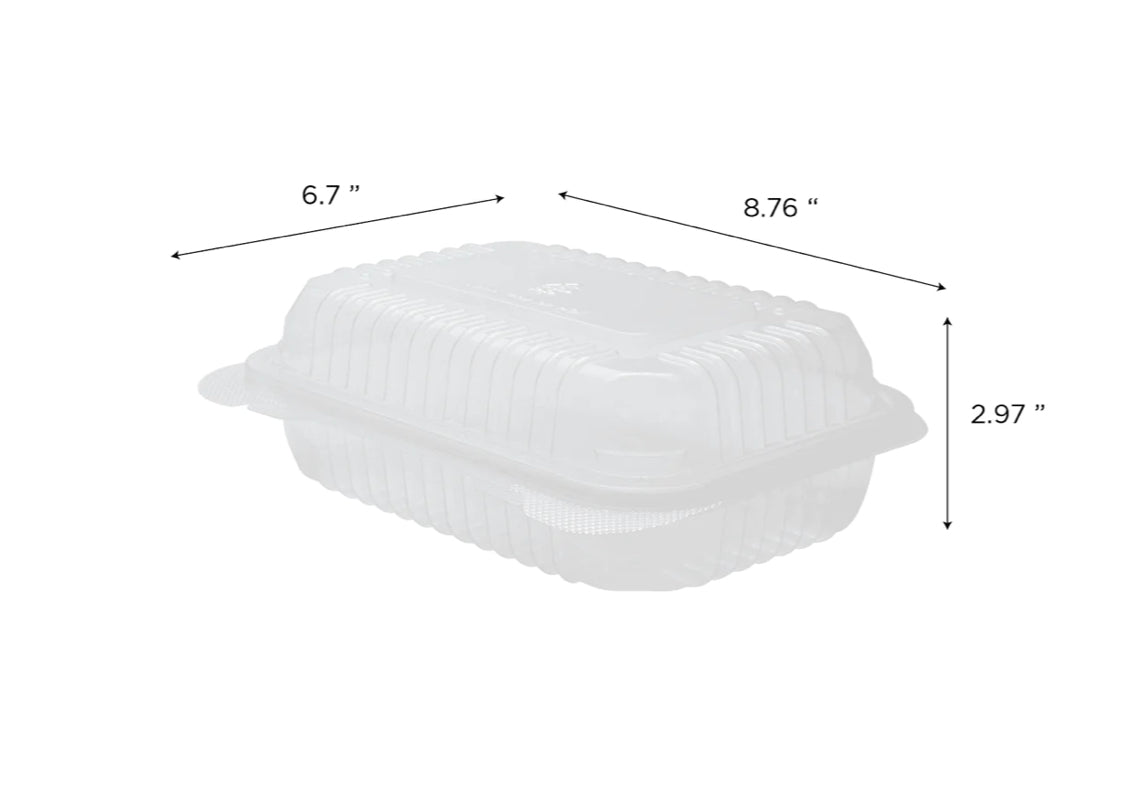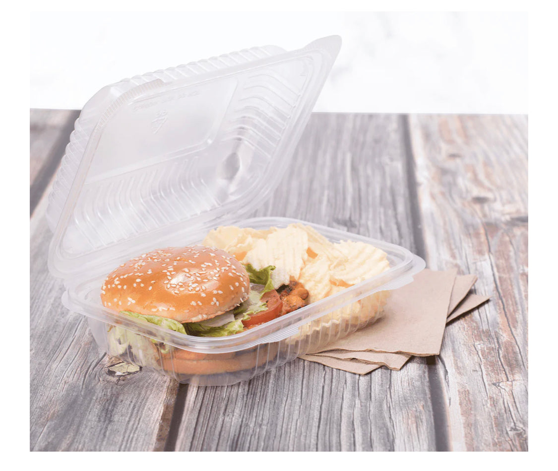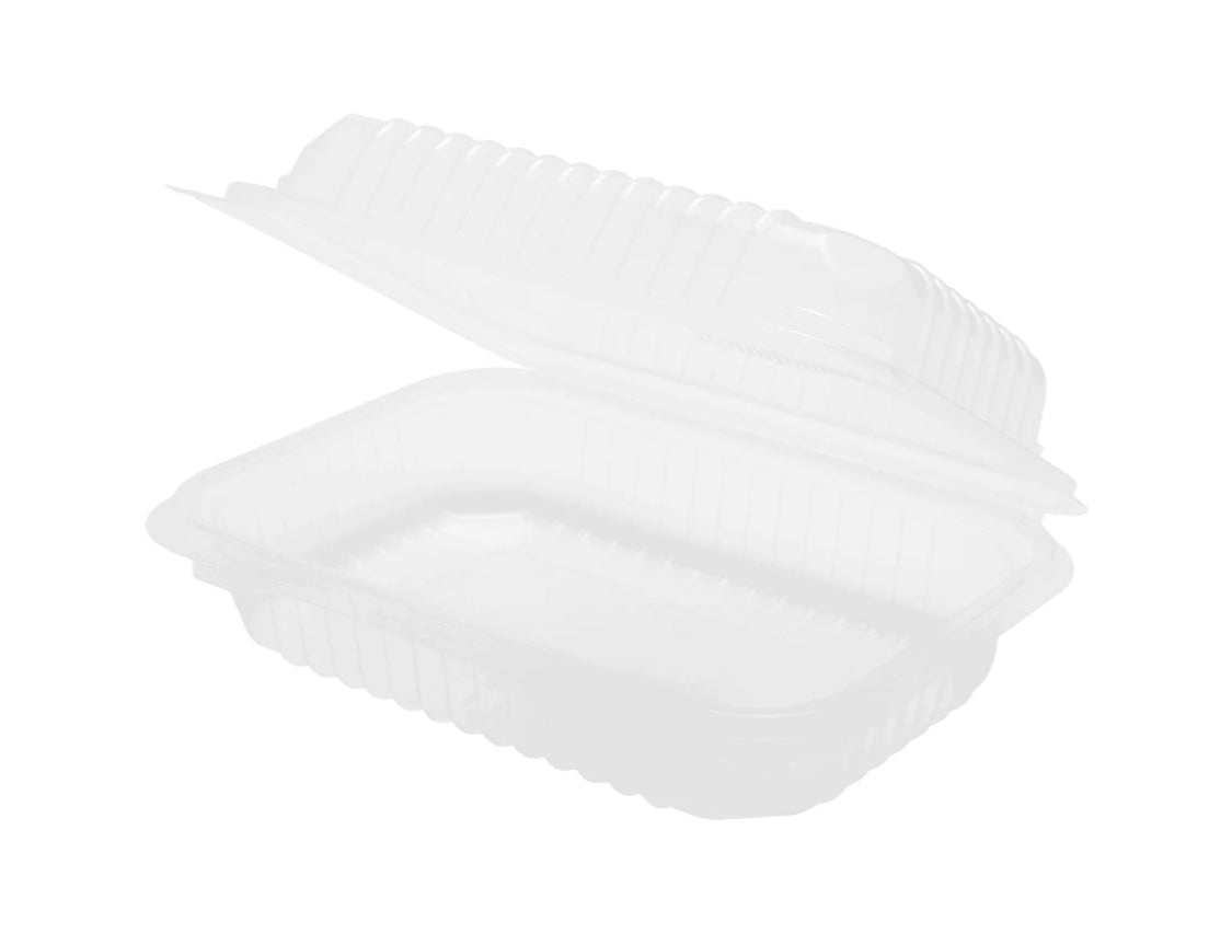 Clear PP hinged containers are made from high quality polypropylene (PP) material. These containers are sturdy and stackable for easy storage. They are also translucent making it possible for your food to be displayed and identified for your customers to see!